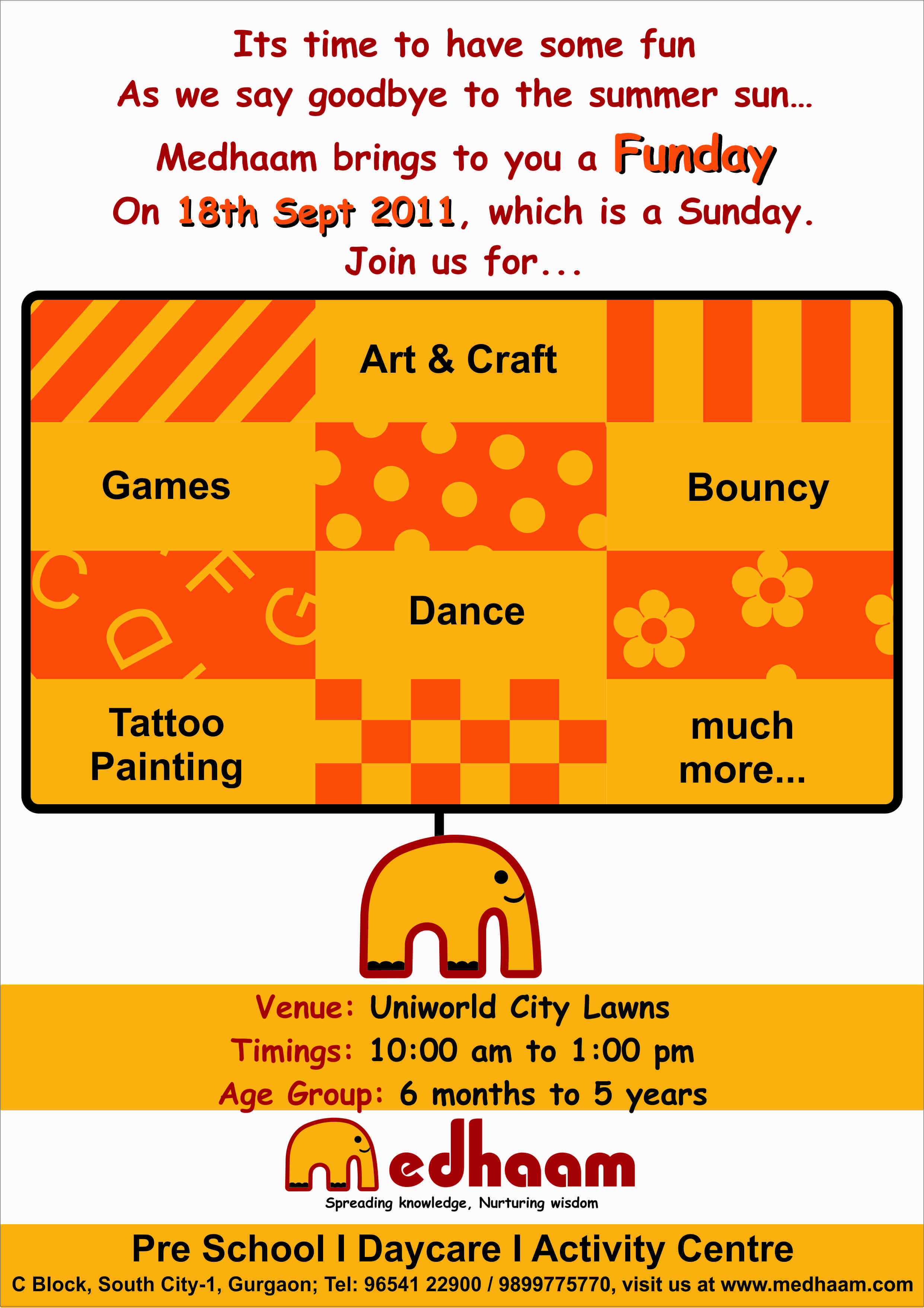 We at Medhaam invite all children aged 6 months to 5 years to be a part of this Funday!